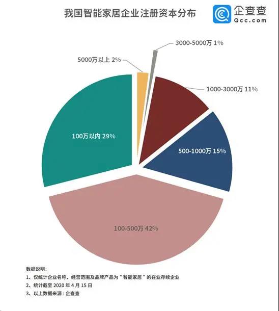 智能家居如此龐大的市場需求和商業(yè)布局,迄今為止整個市場還沒有一家能夠形成較大的規(guī)模。從注冊資本上看,涉足智能家居的企業(yè)大部分注冊資金在500萬以下,注冊資金在5000萬以上的企業(yè)僅為2%。